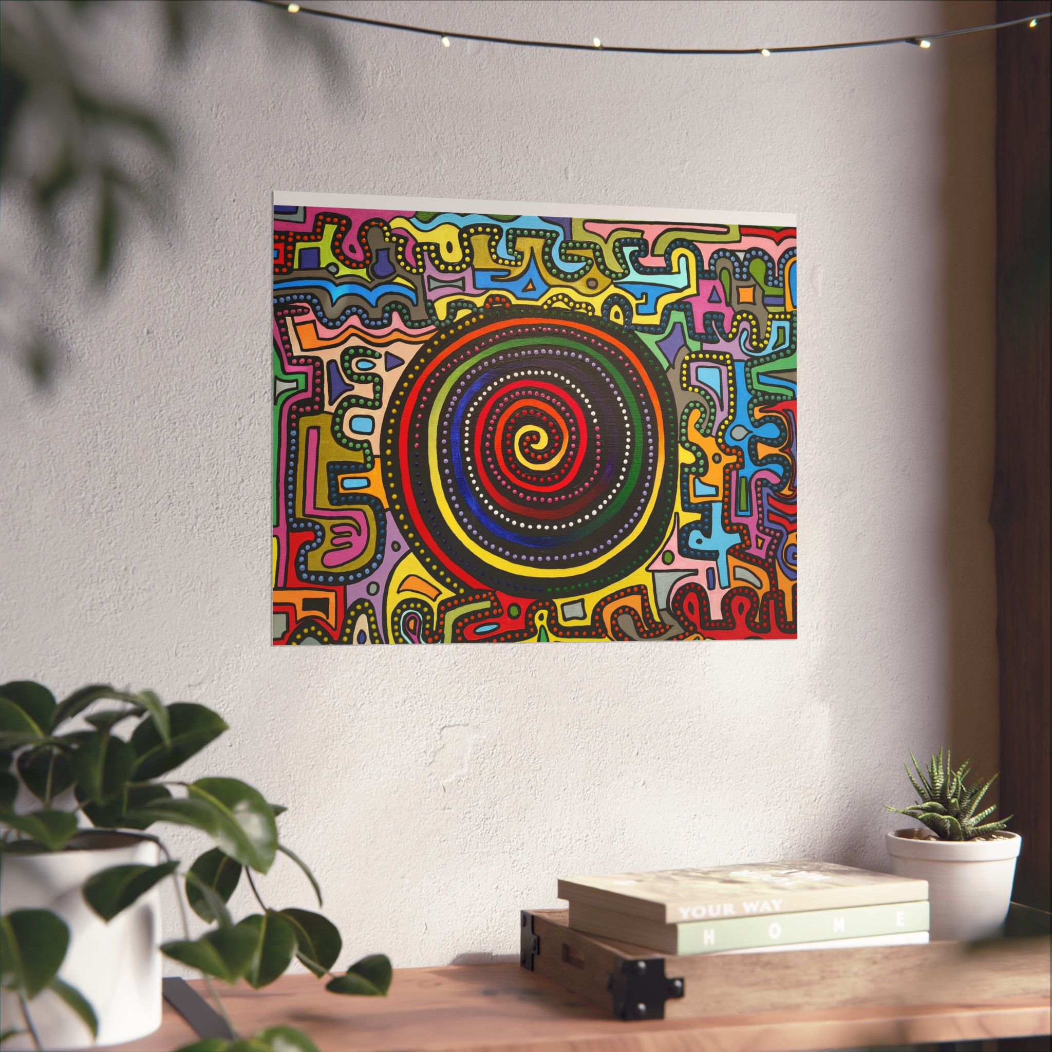 Perfect for meditation rooms, manifestation spaces, or anywhere designed to support personal expansion and spiritual grounding. This piece uplifts the space with bold color frequencies and encourages the viewer to trust their becoming with grace and confidence.