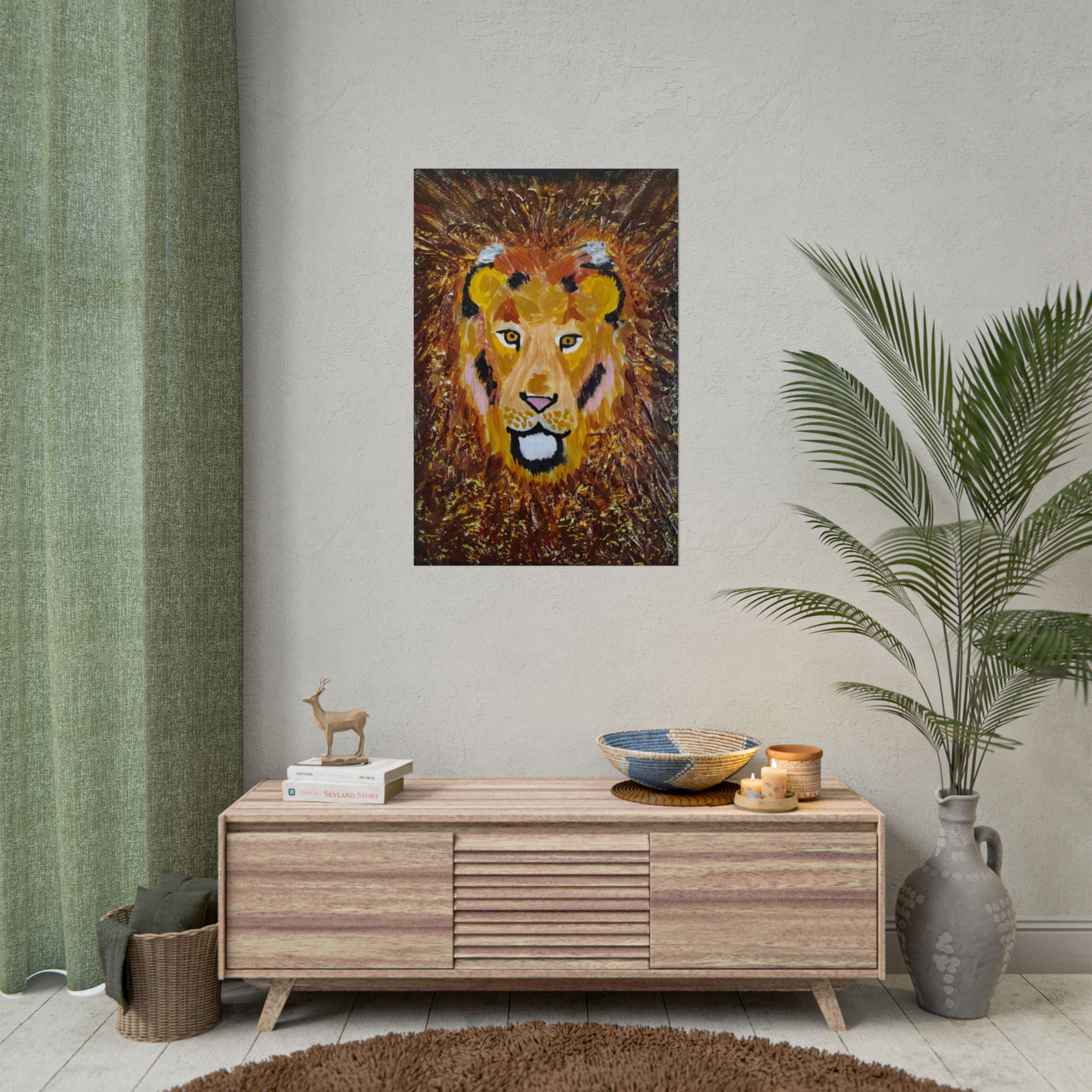 Feel the empowerment and strength radiating from the powerful painting ‘Lion’s Roar’. This rolled poster is designed to awaken courage and confidence, urging you to step boldly into your purpose. Perfect for animal lovers and wildlife enthusiasts, this print serves as a daily inspiration to embrace life without fear.